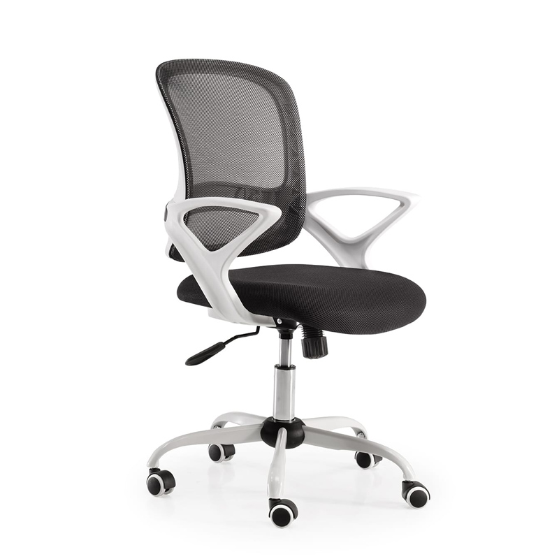 SISTEMA BASCULANTE CON BRAZOS FIJOS, CARCASA BLANCA, RESPALDO MALLA NEGRA ASIENTO NEGRO