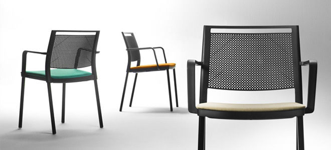 Programa de sillas confidentes multifunción con cuatro versiones diferentes en cuanto a estructura, orfreciendo así un producto idóneo para integrarse en multitud de entornos diferentes, como estancias de oficina o instalaciones mayores.